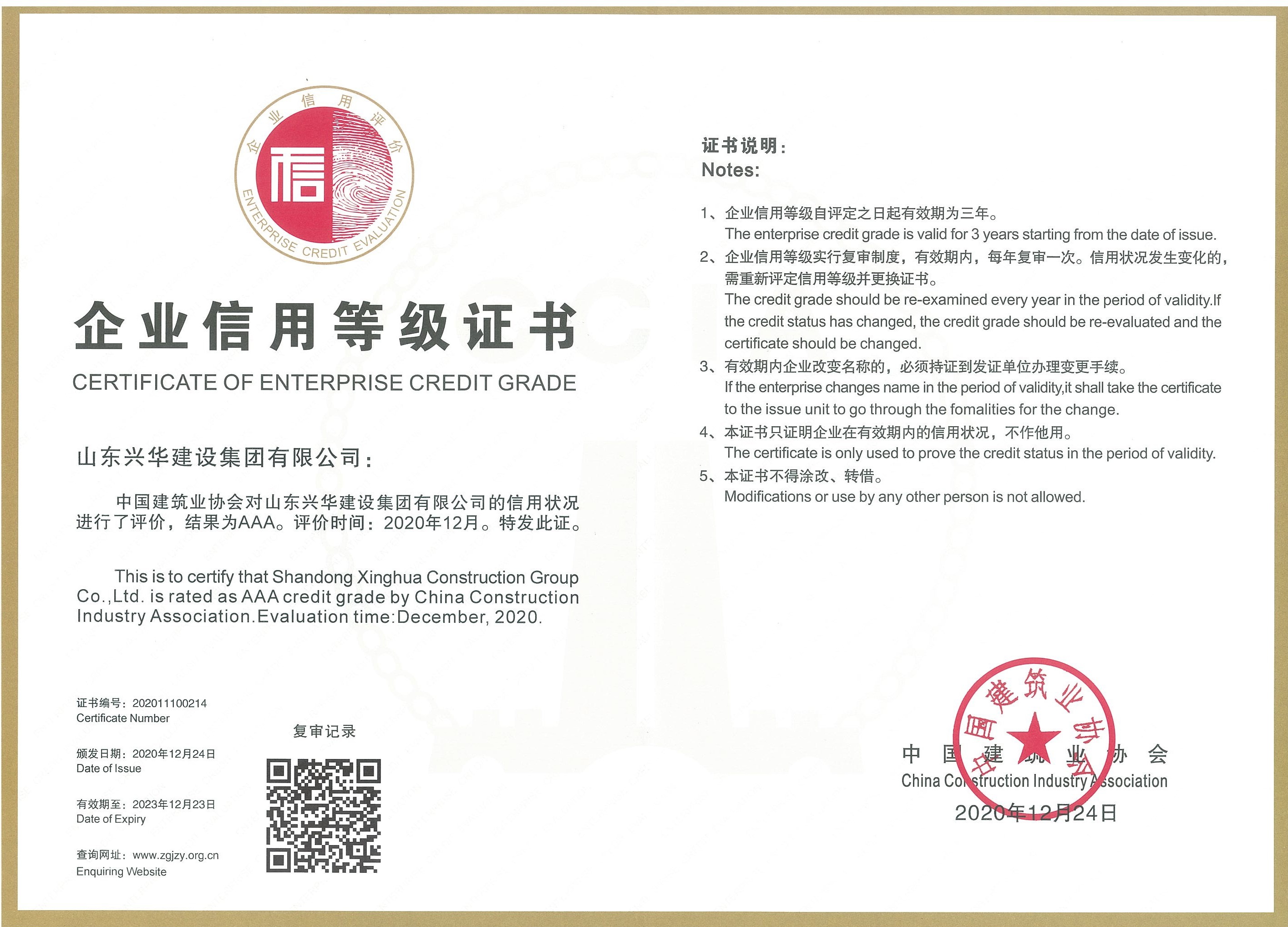 凭证《社会信用系统建设妄想纲要(2014-2020年)》(国发〔2014〕21号)、《修建市场信用治理暂行步伐》(建市〔2017〕241号)文件精神,,,,,,,凭证《修建业企业信用评价步伐》(建协〔2018〕18号)的要求,,,,,,,中国修建业协会组织开展了2020年度修建业AAA级信用企业评价事情。。。。。。。依附优异的信誉,,,,,,,公司被中国修建业协会评定为AAA级信用企