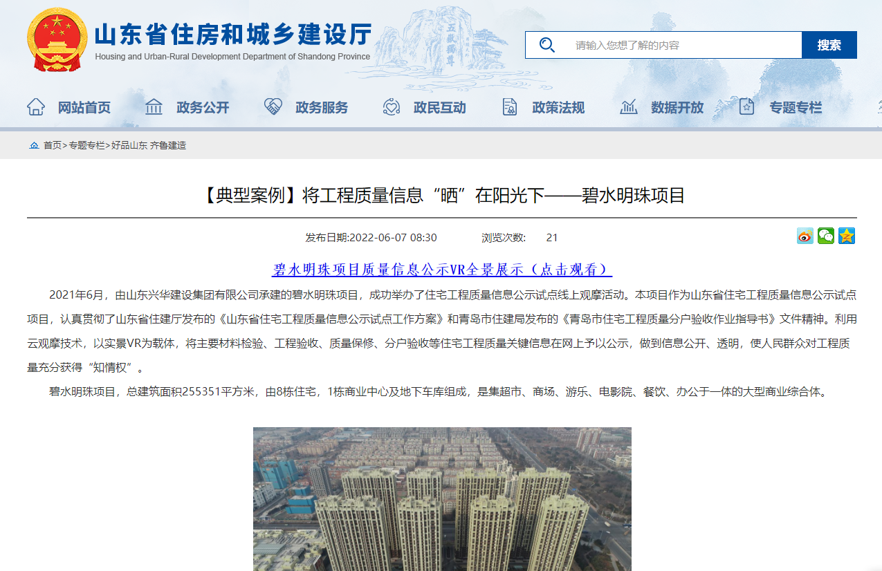 碧水明珠项目被省住建厅官方网站宣传报道